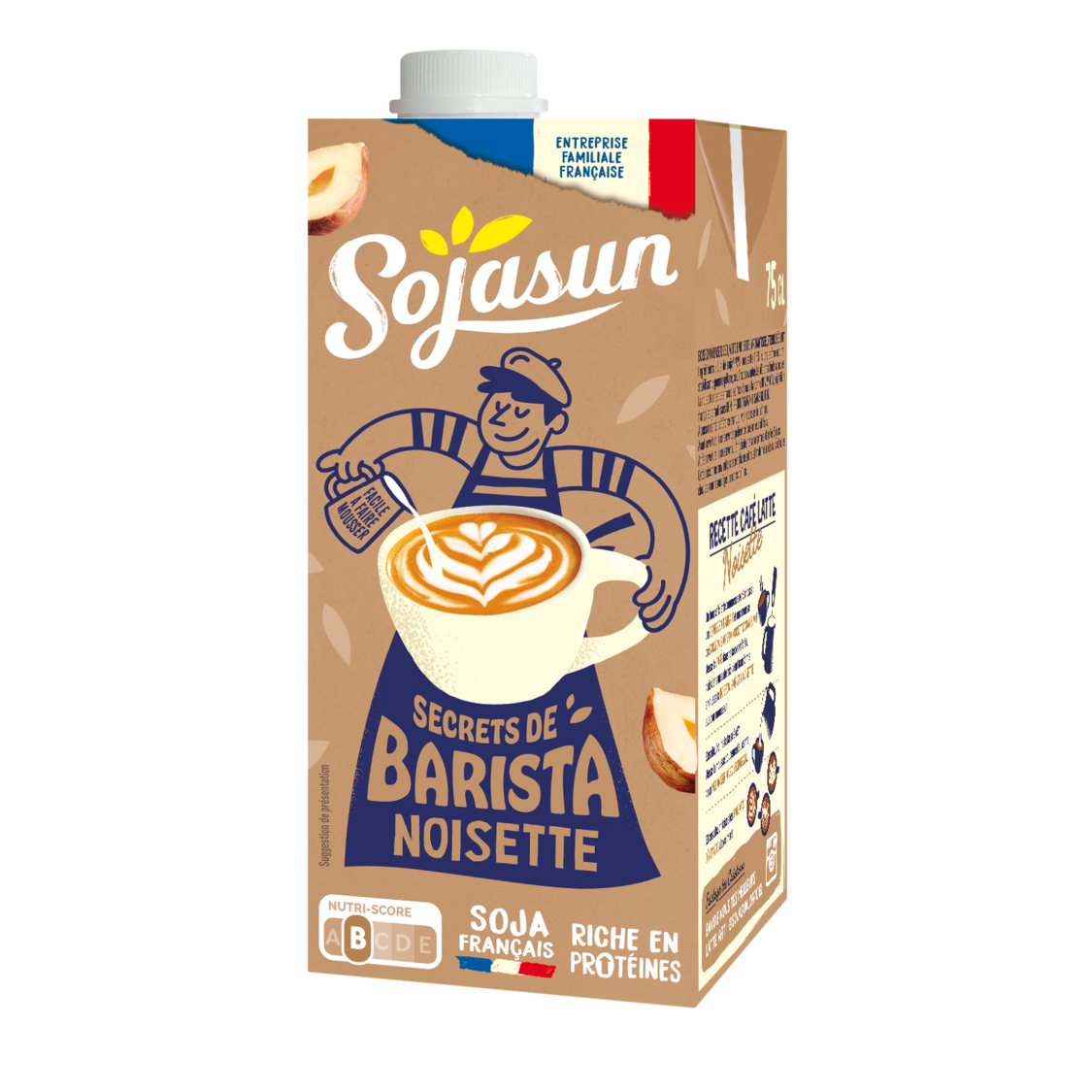 Jus de soja 92%, noisette 1,5%, sucre, arôme naturel, stabilisant : gomme gellane, sel.